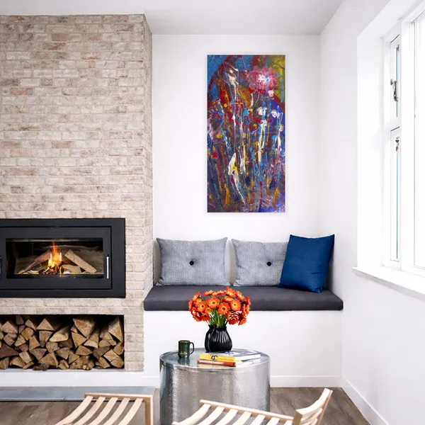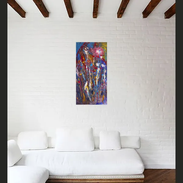 "Pink Moon" channels lunar mystique through expressive, gestural brushstrokes and radiant layers of color. Influenced by nature's cycles and abstract expressionism, I used a palette knife and drip techniques to evoke blooming forms and emotional movement under a celestial glow.