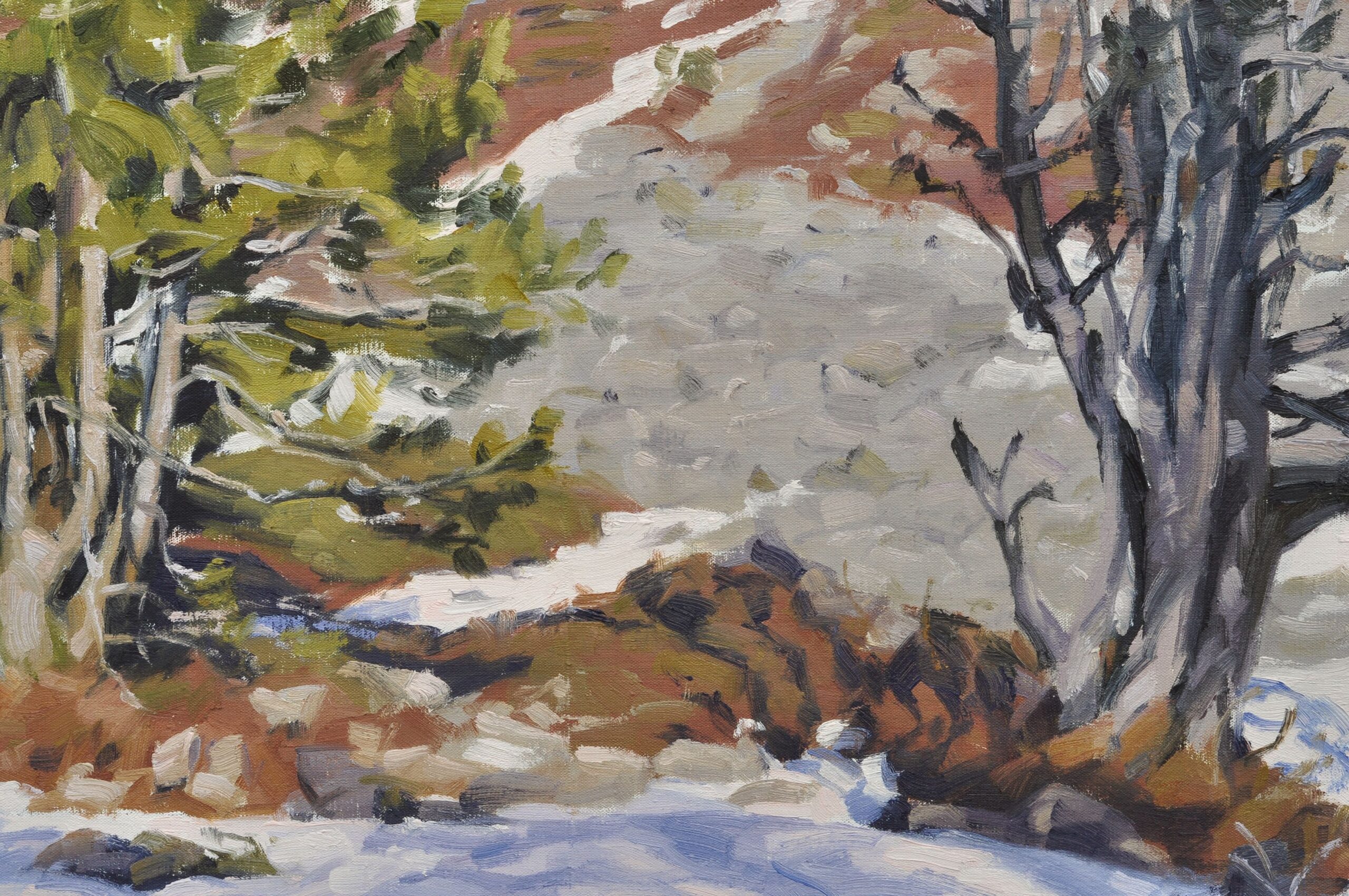 Here I stand on the slopes of Mont Mézenc, not far from the summit. The air is crisp and biting, but the early spring sun is already warming the old, gnarled trunks of the pines. The thaw has begun, revealing the volcanic rocks and the heather. Snow still clings to the hollows of the path. It is a landscape shaped by a harsh climate, just waking up from the long winter.