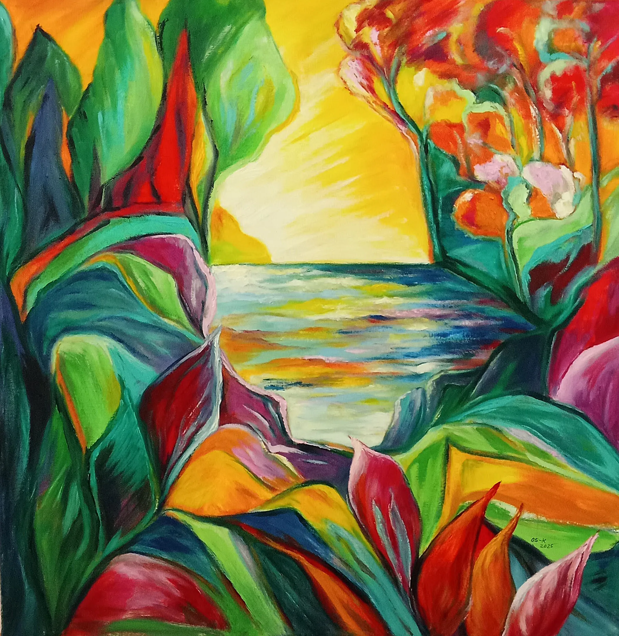Born in Chomutov, in West Bohemia (then Czechoslovakia), Olga Schrüfer-Kozlova grew up in Karlovy Vary, where she completed her baccalaureate and studied languages and tourism economics, alongside fine arts under Professor Ludva. After leaving Czechoslovakia during the Prague Spring in 1968, she settled in Germany and continued her painting studies with Professor Hinsch in Göttingen. From 1979 onward, she exhibited internationally in Germany, France, Monaco, Switzerland, the Czech Republic, the United States, and Canada. Her works are held in numerous private and public collections worldwide. Now living and working near Étretat, on the coast of Normandy, in France, she devotes her practice to landscapes suffused with light. Echoing Goethe’s words, “Colors are the deeds and sufferings of light,” her paintings reveal a profound, luminous depth.
