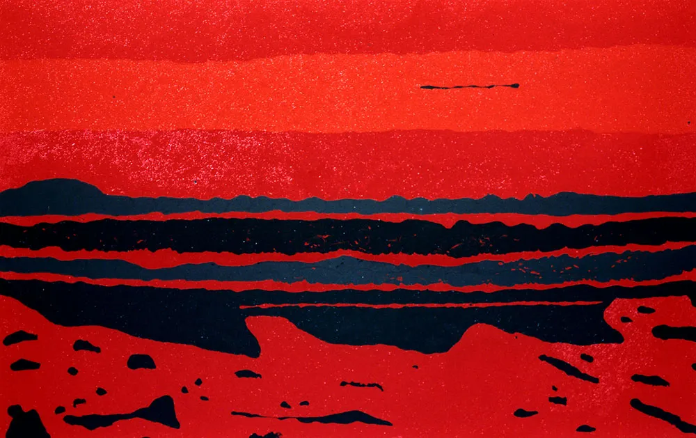 This striking work, with its interplay of red and black tones, conveys a dramatic yet harmonious contrast. Its abstract nature invites diverse interpretations, making it beautifully enigmatic. Through its simple color palette and abstract composition, this work successfully captures and retains the viewer's imagination, standing as a testament to the dynamic fusion of art and emotion.