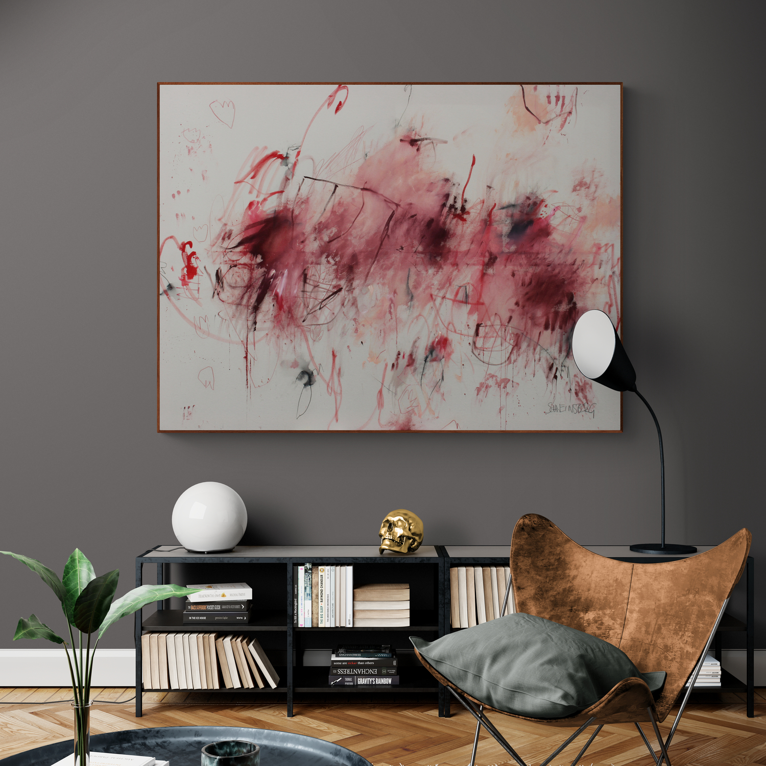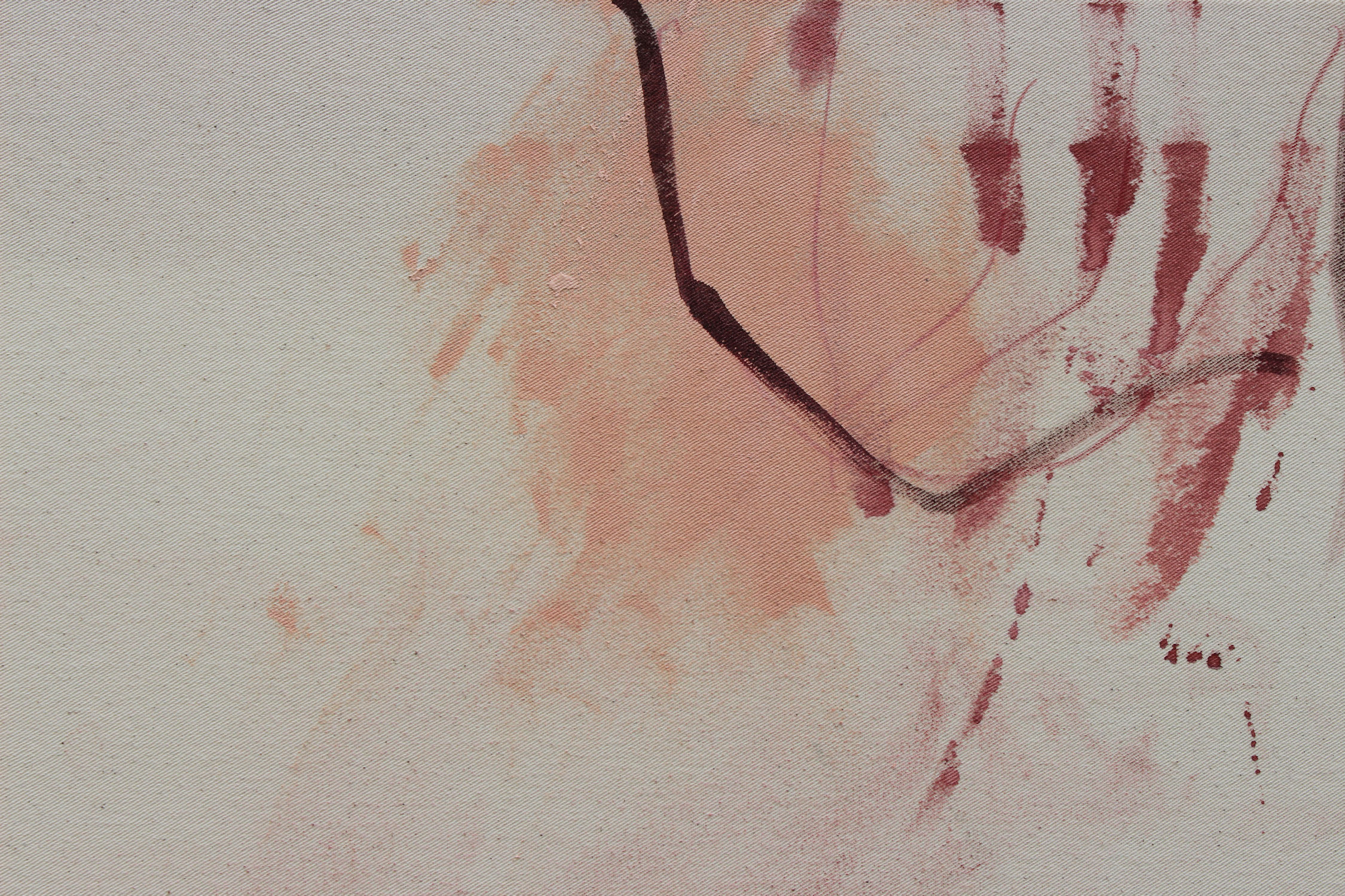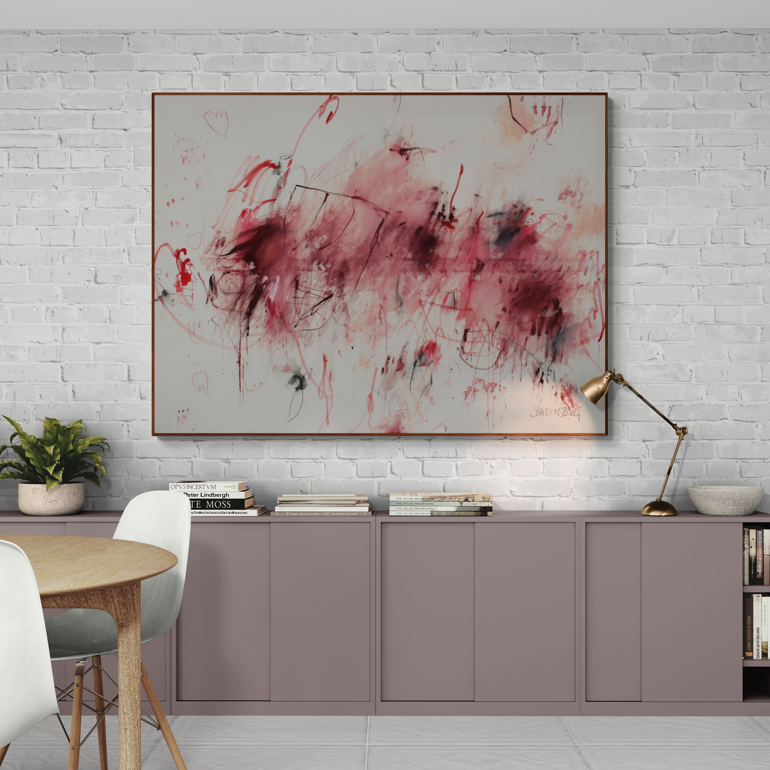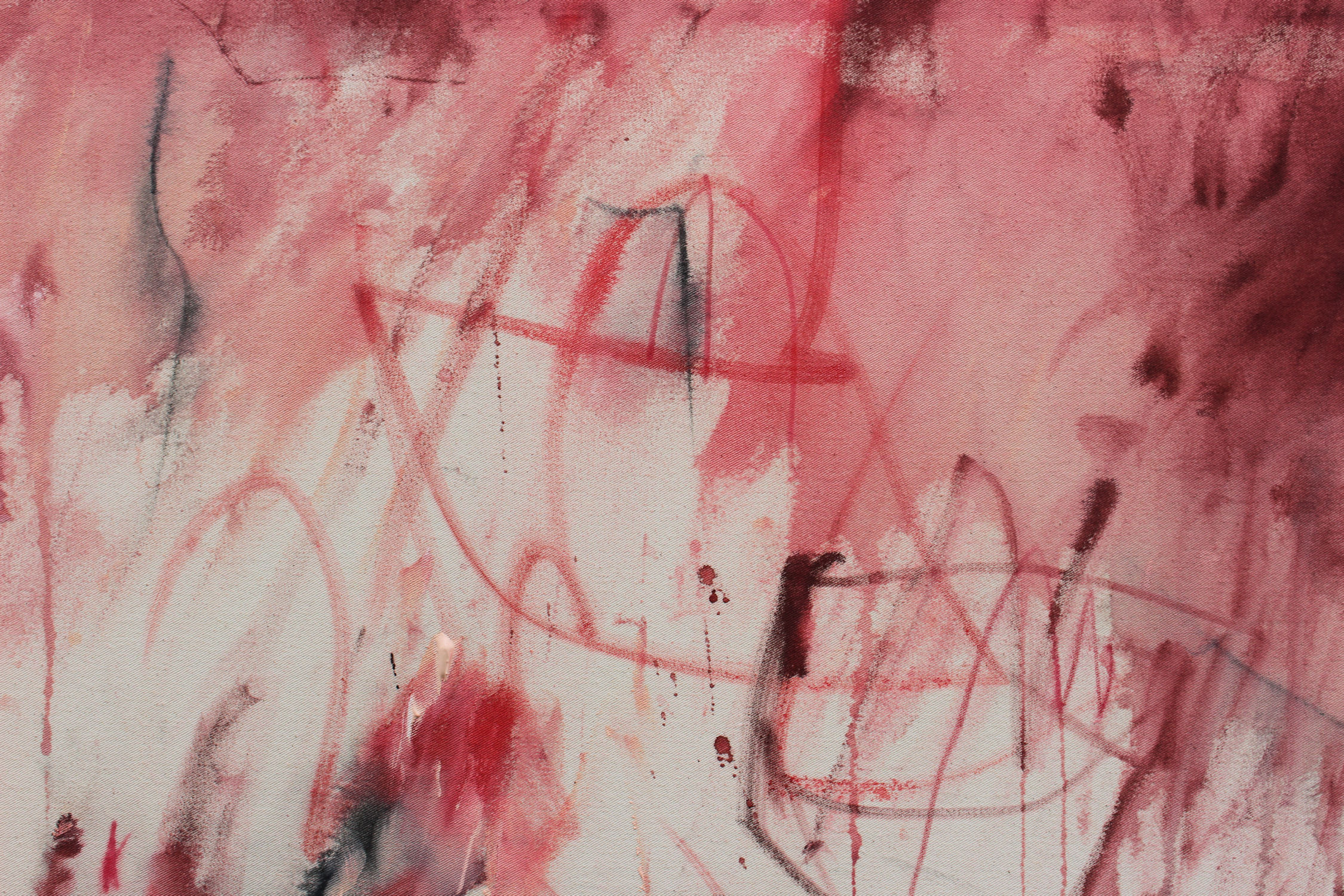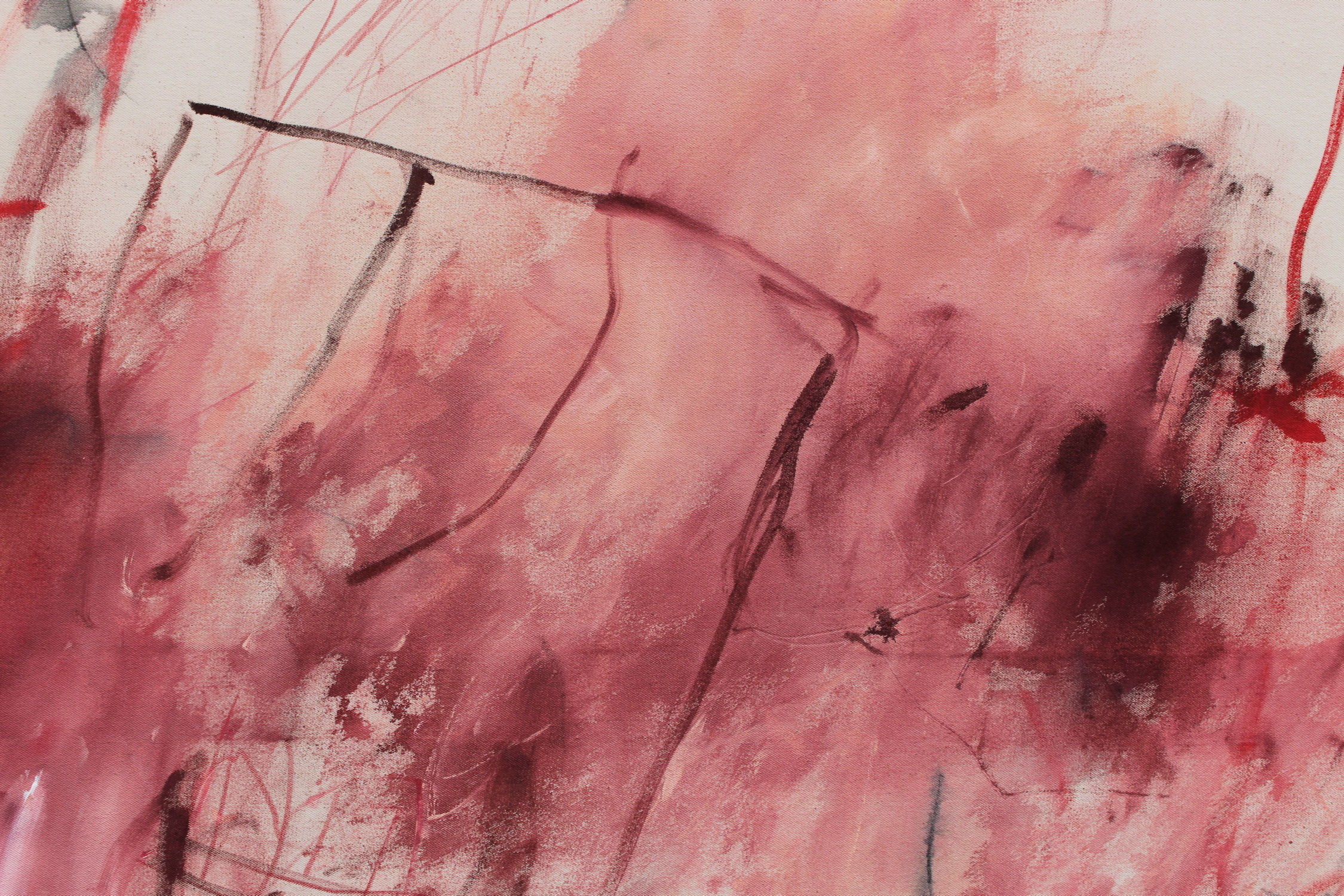 “SELF‑PORTRAIT IN RED” is titled after Pollock’s quote that painting is a state of being and that every artist ultimately paints themselves. What began with drawn lines became a visceral, intuitive process as I painted with my hands, letting movement, pressure, and raw contact shape the large abstract artwork. Layers of red and pink, black marks and the raw, natural creamy canvas form an emotional, expressive composition, a bold statement piece for modern or classic interiors.