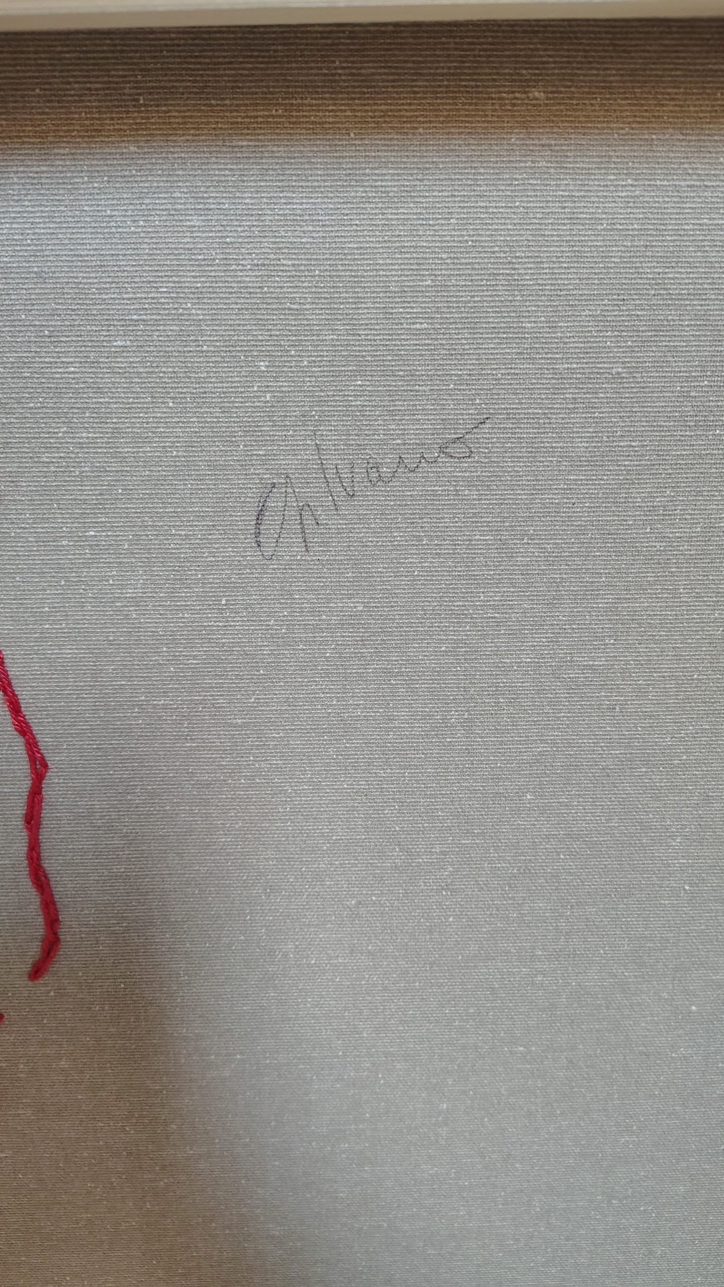 Oil painting is her primary medium, chosen for its immediacy and emotional depth. She paints quickly, guided by intuition rather than technical perfection, seeking the intensity of the gesture and the truth of the moment. Embroidery is introduced later as a slower, meditative act—one that stabilizes, fixes, and deepens the initial impulse. Each stitch becomes both a physical mark and a symbolic gesture, connecting the work to an ancient, feminine knowledge and creating a tactile, three-dimensional surface.