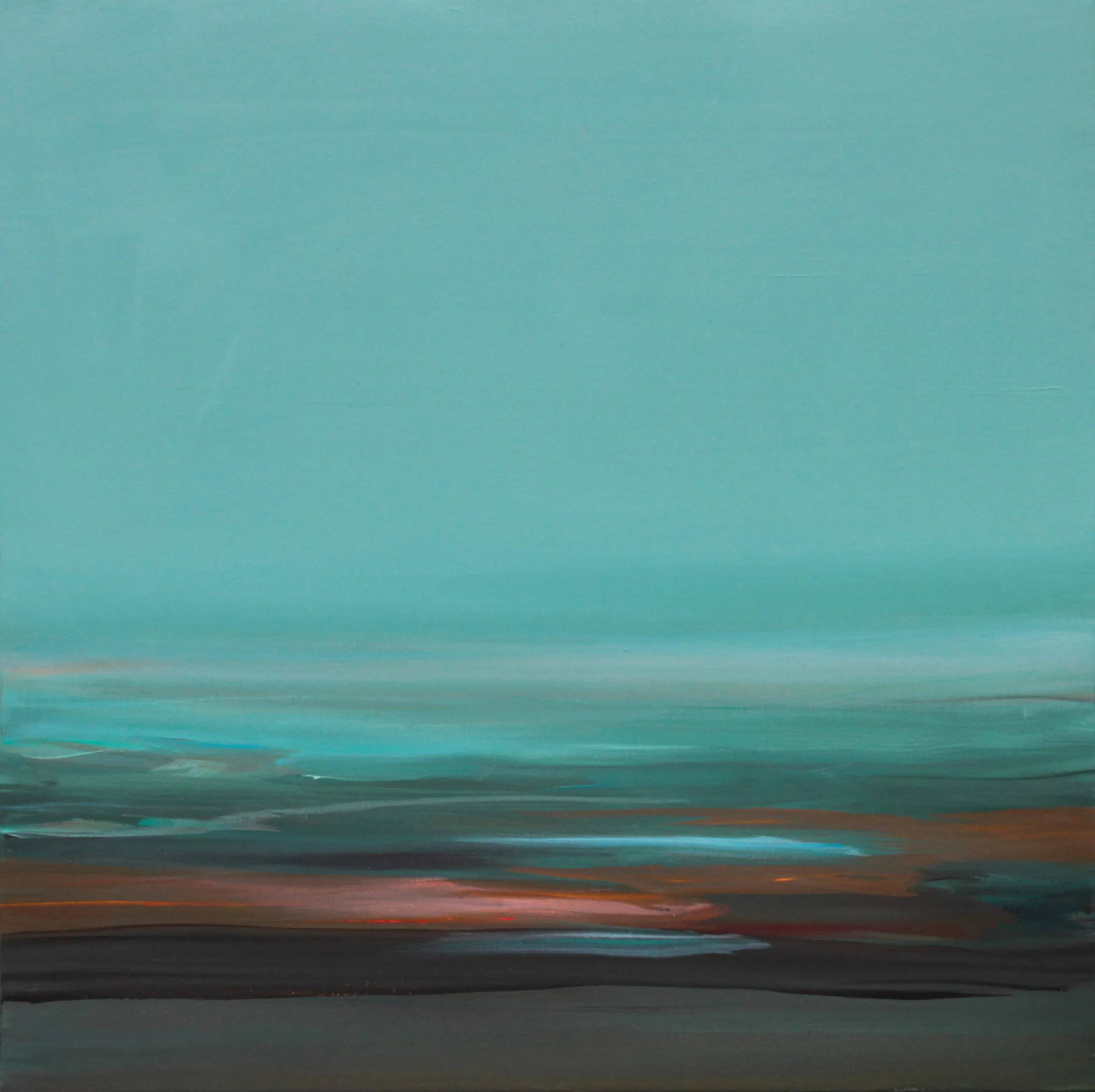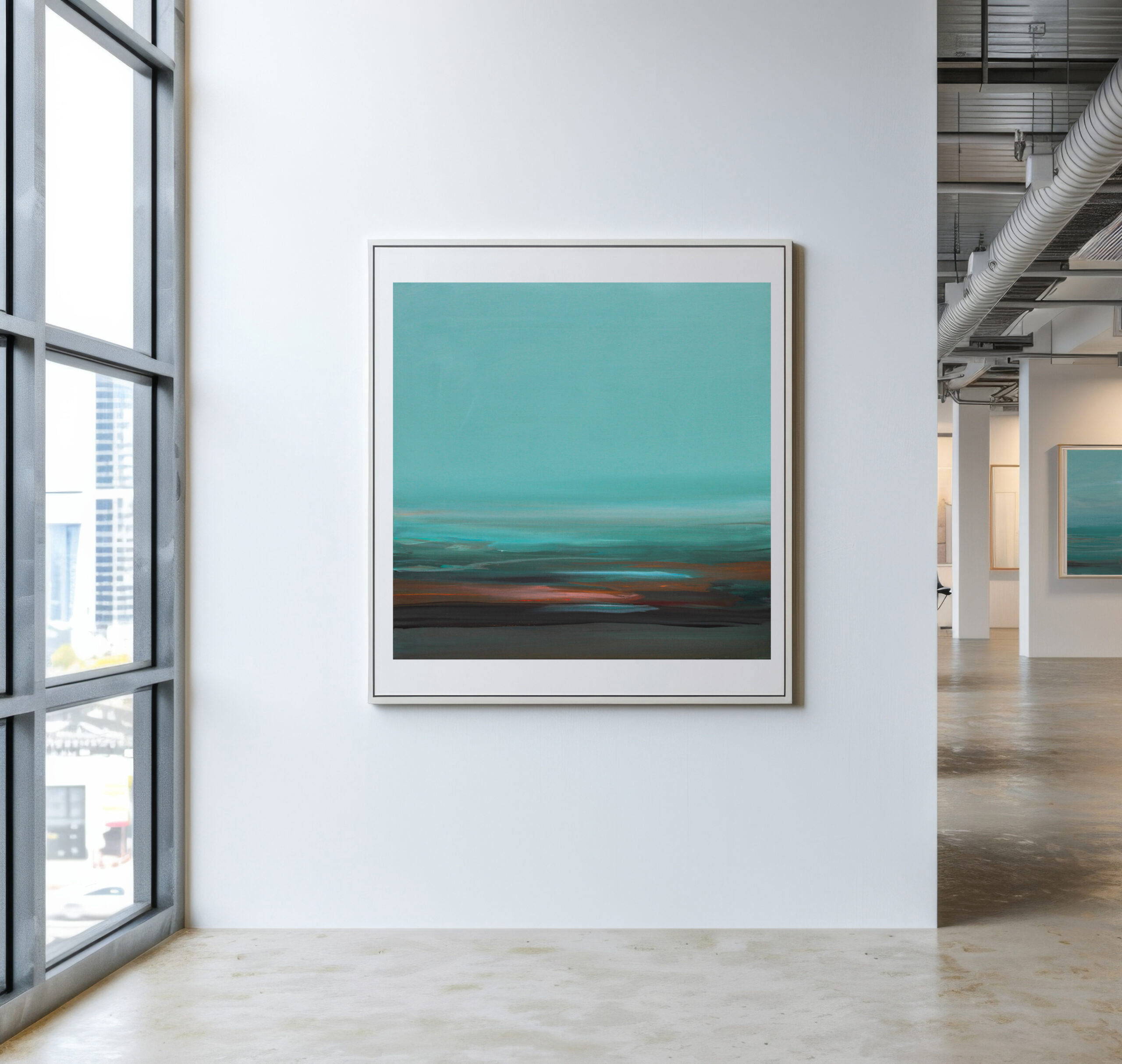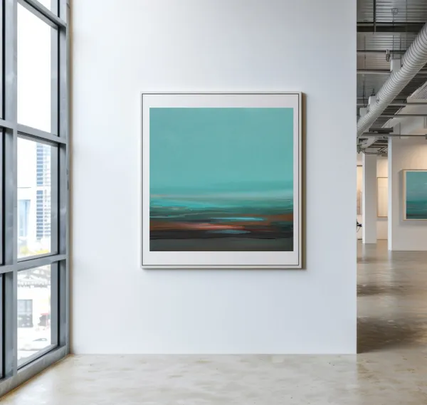 "Soulcatcher II" is an original, abstract seascape painting, inspired by the stark beauty of the North. The blue, green, and gray hues evoke a misty morning on a northern coast, where the sky meets the beach in a hazy horizon. The artwork is finished with a matte varnish with UV protection. The sides are painted, so no additional framing is required.The artwork will be shipped to you in a crate, ensuring its safe arrival.
