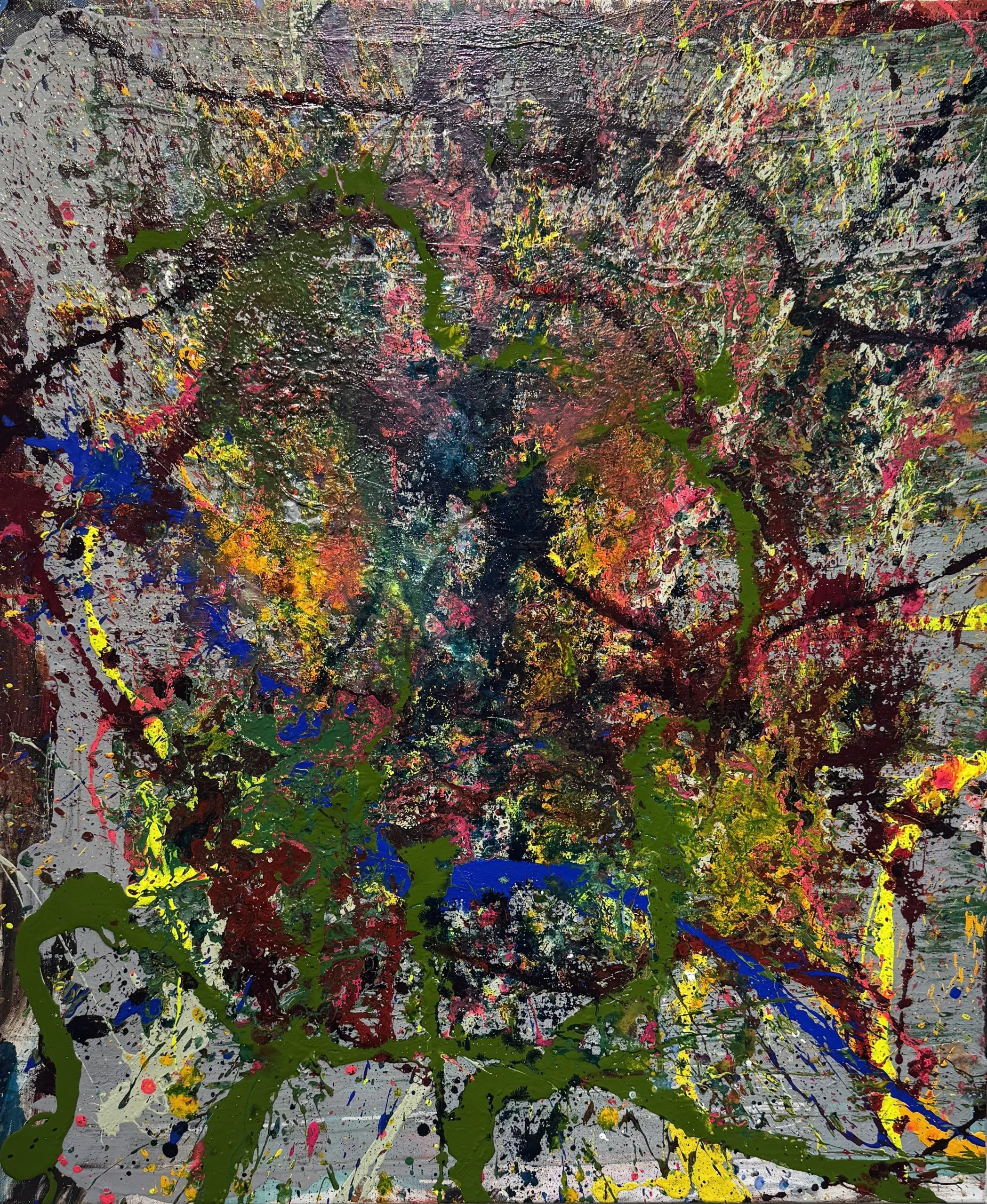 this picture and its idea derives form my strong interest in jackson pollock and abstract expressionism in general. the piece is my effort to paint without contact with a brush. I seldom use brushes and go after a no - contact technique.