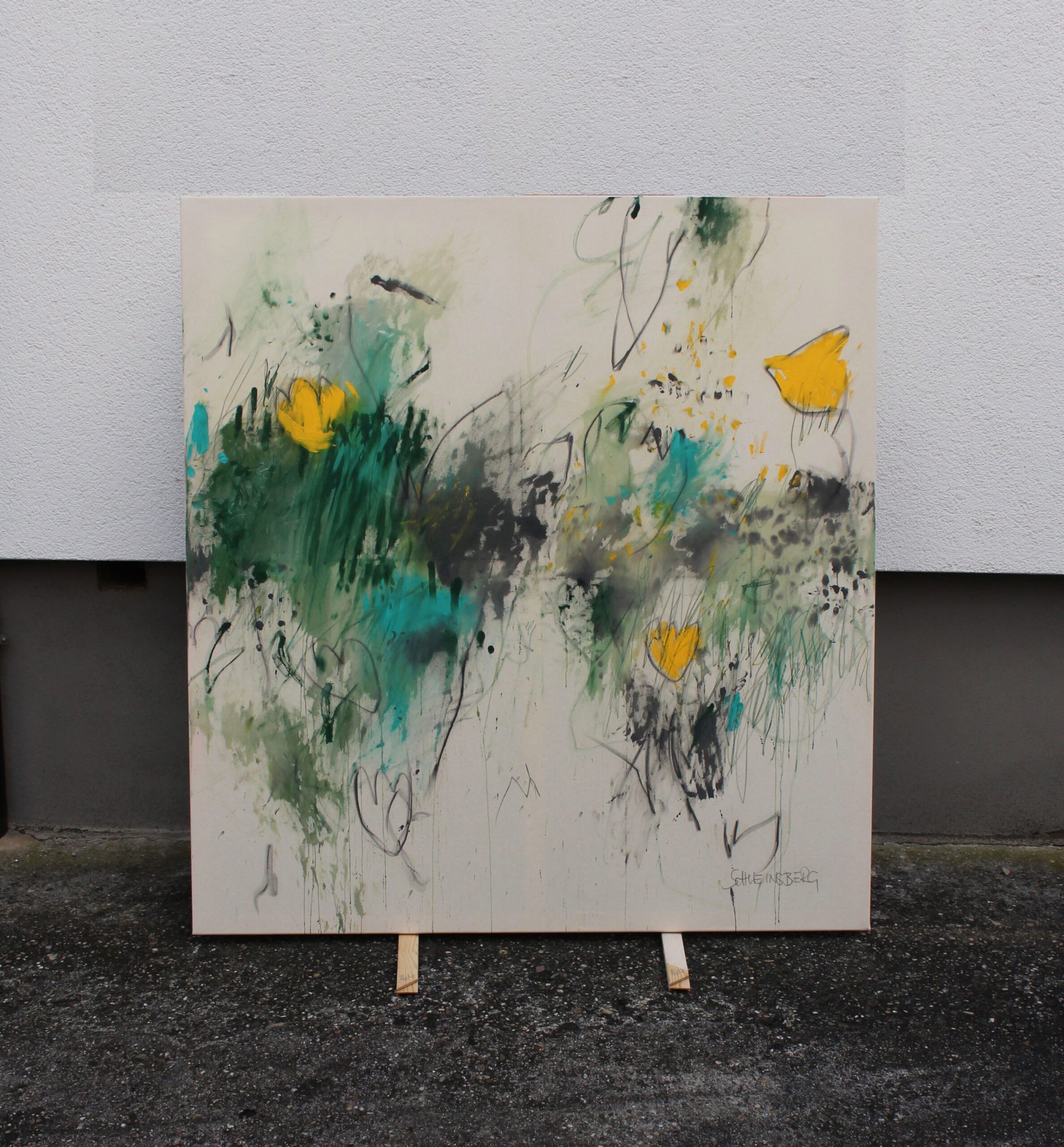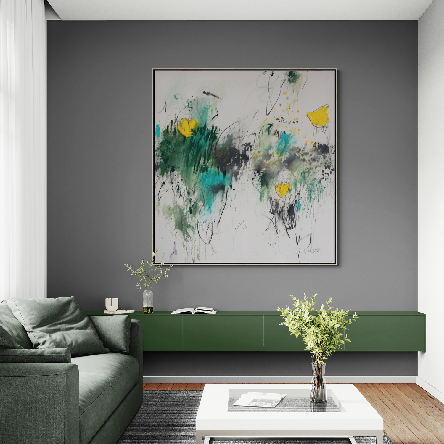 “THE ESSENTIAL PLACE” is a contemporary abstract painting rooted in presence and sensory experience. I applied most of the paint with my hands, leaving intimate, gestural traces. The work is about just being, a state beyond doing, beyond thinking, immersed in green grass and flowers, in warm summer light. A extra large, vibrant, expressive piece of modern art. Ships rolled. Signed on the front, signed and dated on the back.