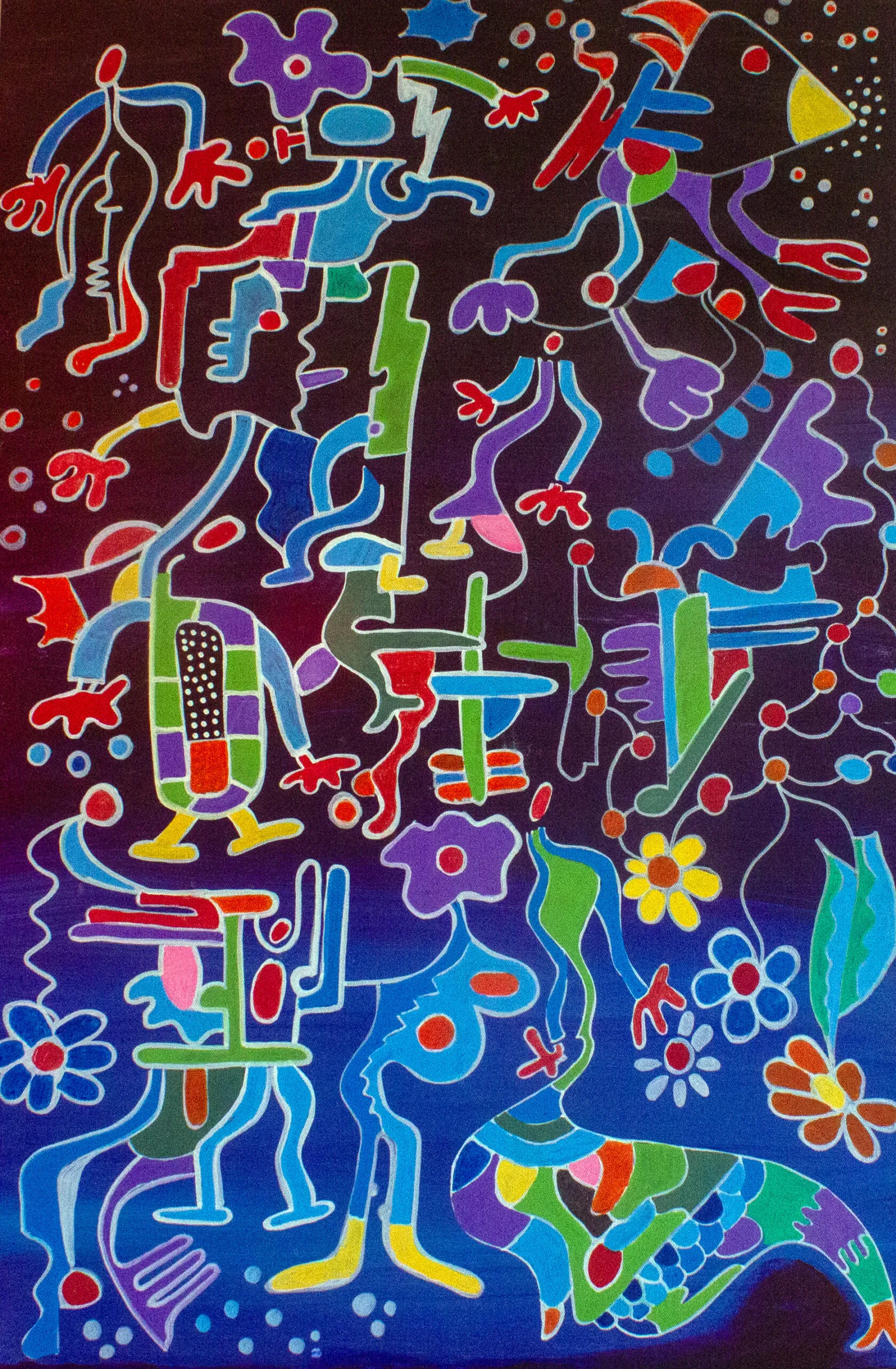 I am Nathalie Gribinski, a French-American artist based in Chicago. My work is driven by intuition, movement, and a deep love of color. Using oil markers and acrylics, I create playful, rhythmic worlds where figures, animals, and symbols dance freely. Inspired by music, nature, and inner emotion, my paintings celebrate joy, connection, and the poetry of life in constant motion.