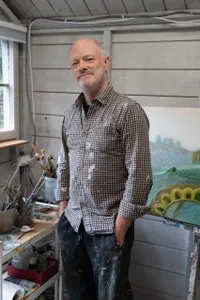 Rob van Hoek is a seasoned artist from the Netherlands who has showcased his work in both solo and group exhibitions around the world. Inspired by frequent visits to art museums in his childhood, he eventually developed his own artistic practice. Van Hoek creates textured, patchwork-style landscapes using oil and cold wax on canvas. His paintings blend complementary color schemes and rich textures, offering a semi-abstract interpretation of traditional landscape painting.