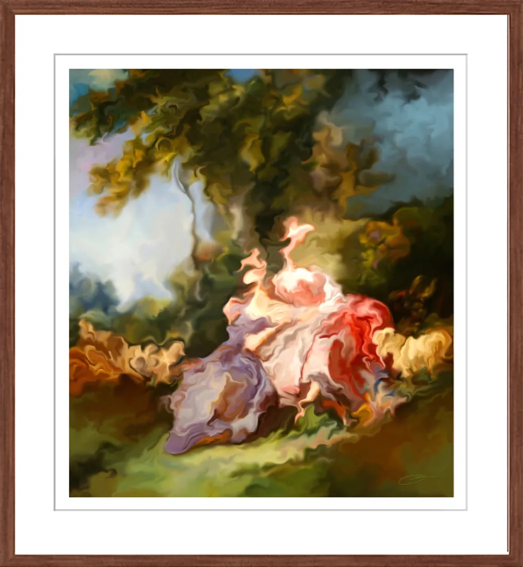 Medium : Digital on Paper , Alu-Dibond under plexiglas Framing : Framed Dimensions : 40x40cm Edition : 3 / 3 Artist's proof : 1 Hors commerce : 3 Jason Engelbart’s baroque-abstract works seek balance and reflection in an uncertain world. Using a refined digital technique, he reinterprets Baroque masterpieces, layering and transforming them into timeless, emotional experiences, where color and form merge into a transcendent moment.