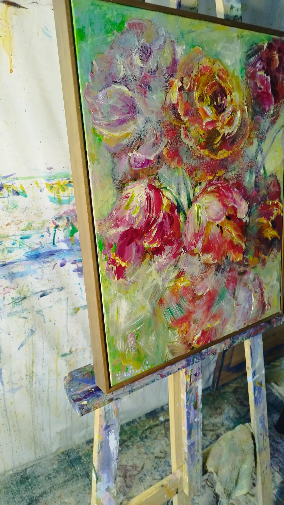 Painted in expressive style, the composition remains harmonious and uplifting, offering a lively celebration of colour.